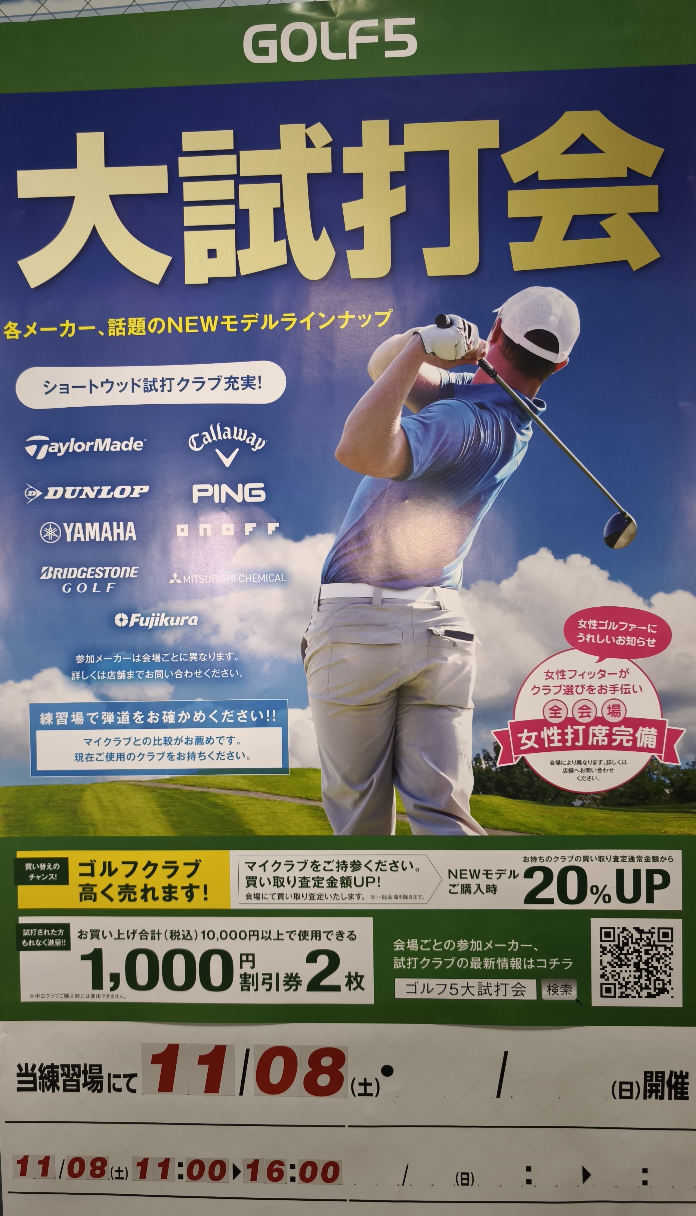 11月8日(土)ピーズリンクス2階全打席にてゴルフ5主催の大試打会を開催致します。開催日